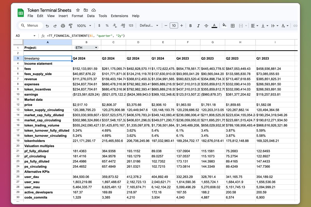 Introducing Token Terminal Sheets: Access Onchain Data in Your Spreadsheet