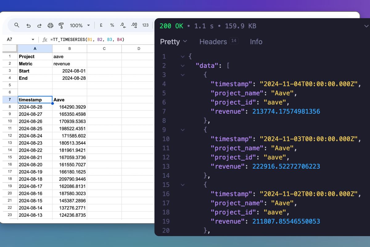 We’re excited to introduce Token Terminal Sheets, a Google Sheets & Microsoft Excel plug-in that makes all Token Terminal datasets accessible within analysts’ spreadsheet workflows, and frees up more time for research and insight generation.