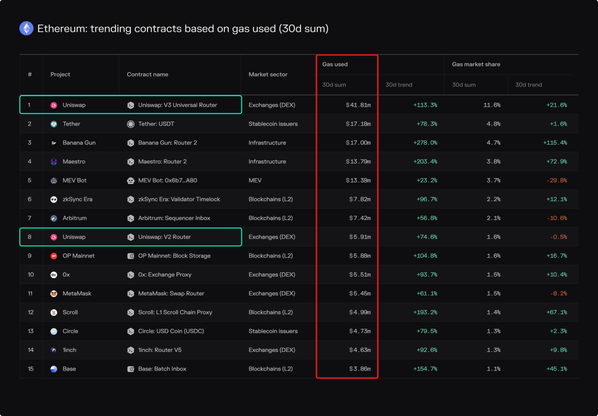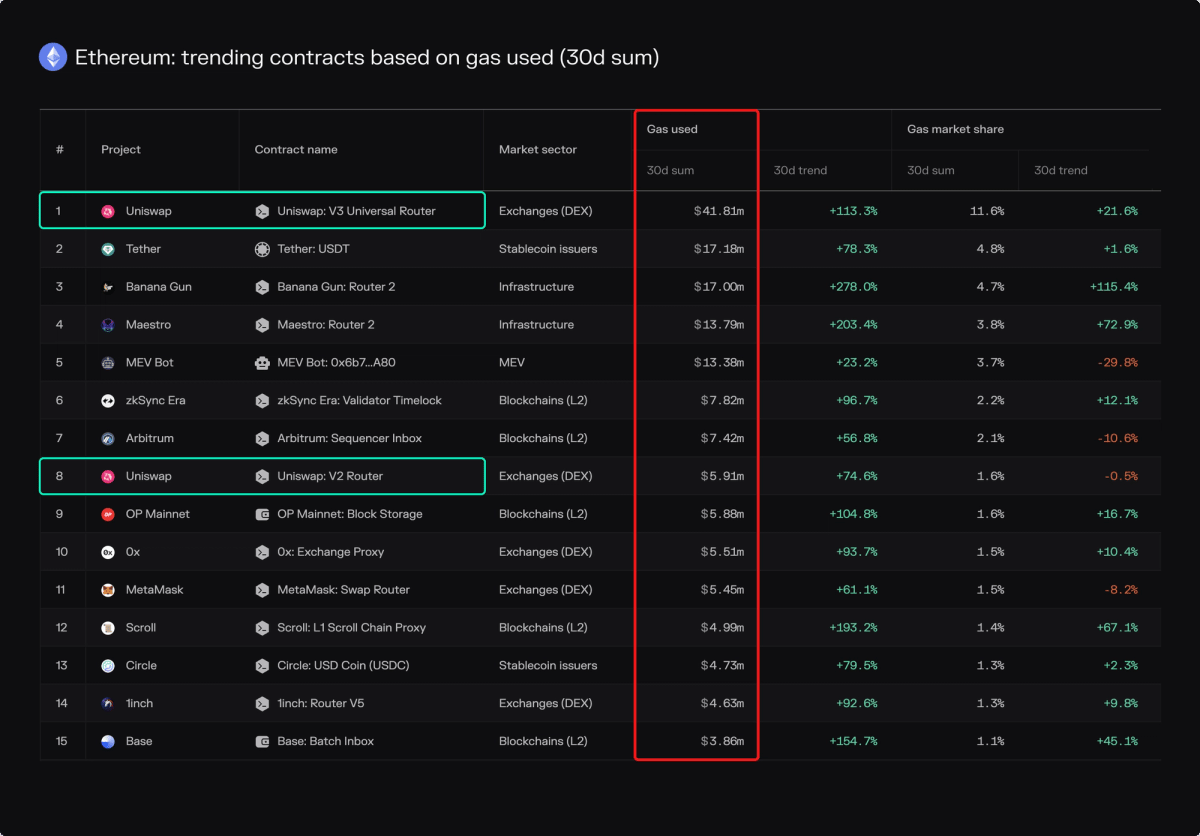 Key takeaway: Uniswap contracts consume more than 10% of all gas (transaction) fees on Ethereum.