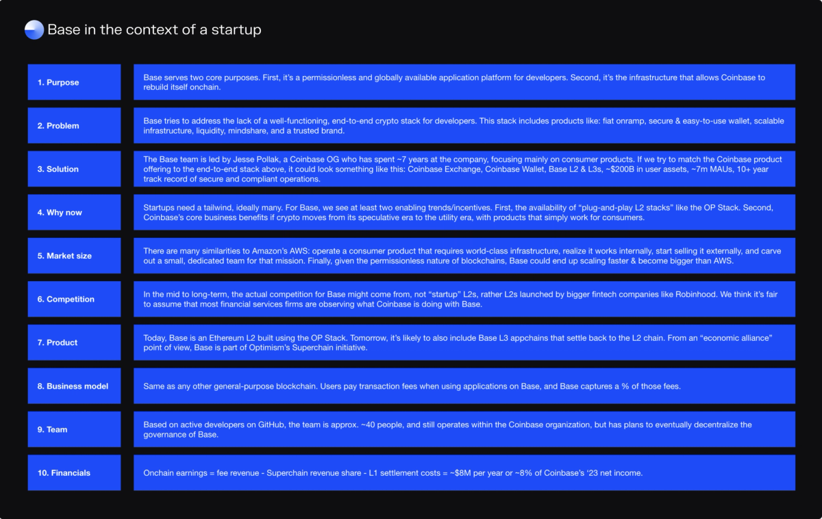 Labs entity → In contrast to other L2 teams, Base is a startup within a publicly listed crypto company.