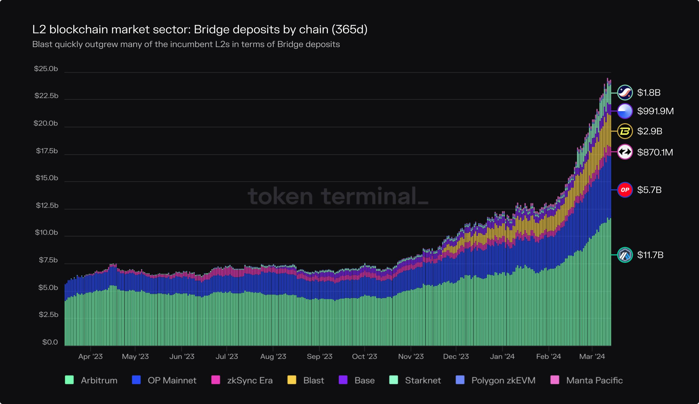 Blast quickly outgrew many of the incumbent L2s in terms of Bridge deposits.